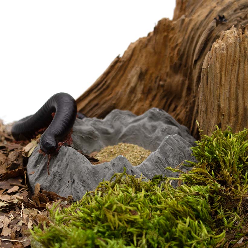 Gefertigt aus Gips ist der Insektenliebe Futterfels robust, langlebig und leicht zu reinigen. Er eignet sich hervorragend zur Gabe von Trockenfutter, Pellets, Gelfutter oder auch kleinen Obststückchen und verhindert, dass das Futter mit dem Bodengrund vermischt oder kontaminiert wird. Gerade bei bodenbewohnenden Arten wie Asseln, Tausendfüßern oder kleinen Käfern wird so sichergestellt, dass die Tiere ihre Nahrung gut erreichen und aufnehmen können.