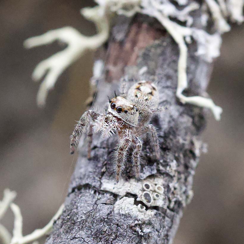 Die Phidippus otiosus „Kuba“ ist eine besonders auffällige Variante der nordamerikanischen Springspinne und sticht durch ihre charmante Ausstrahlung, große Augen und flauschige Erscheinung sofort ins Auge. Diese Farbform stammt ursprünglich von der Karibikinsel Kuba, was ihr nicht nur den Namen, sondern auch ein einzigartiges Erscheinungsbild verleiht. Typisch ist der beige bis graubraune Grundton, kombiniert mit zarten dunklen Akzenten, die je nach Lichtverhältnissen schimmern. Die Tiere sind kompakt, kräftig gebaut und bewegen sich mit der für Phidippus-Arten typischen Neugier und Lebhaftigkeit.