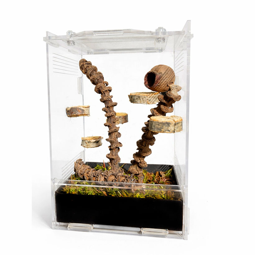 Mit einer Größe von etwa 2 bis 5 cm eignen sich die Scheiben gut für kleinere Acrylterrarien bis zu größeren Glasterrarien. Gerade bei der Haltung von Springspinnen lässt sich damit schnell zusätzlicher Lebensraum schaffen.