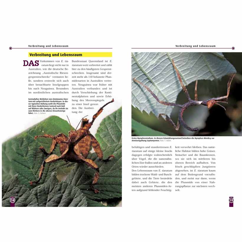 Haltung und Nachzucht von Gespenst- und Stabschrecken sowie Wandelnden Blättern, die zusammengefasst die Insektenordnung der Phasmatodea bilden und als Phasmiden bezeichnet werden, gewinnen in der Terraristik immer mehr Anhänger. Besonders die Australische Riesengespenstschrecke (auch Australische Gespenstschrecke genannt) erfreut sich dank ihres skurrilen Äußeren schon seit längerer Zeit wachsender Beliebtheit und ist unter allen Gespenstschrecken die populärste und am häufigsten im Terrarium gepflegte Art.