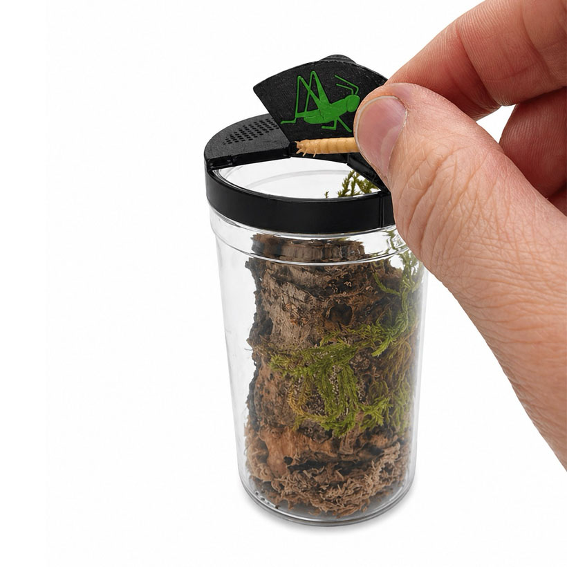 So bleibt frische Luft im Becher, und gleichzeitig bleiben selbst kleinste Futtertiere sicher im Inneren. Dadurch entsteht ein stabiles und kontrolliertes Mikroklima.