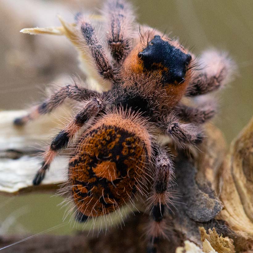 Als Futtertiere eignen sich Fruchtfliegen, Stubenfliegen oder Ofenfischchen. Alles, was innerhalb eines Tages nicht gefressen wird, sollte aus dem Terrarium entfernt werden. Wir füttern und wässern Jungspinnen alle 3 Tage und adulte Tiere einmal in der Woche.Die Luftfeuchtigkeit sollte bei 70 % bei einer guten Durchlüftung liegen. Wir sprühen etwas Wasser in eine Ecke. Das genügt vollkommen und man sollte lieber etwas spärlicher sprühen als zu viel. Die Tiere nehmen die Wassertropfen bei Bedarf auf und stillen so ihren Durst.