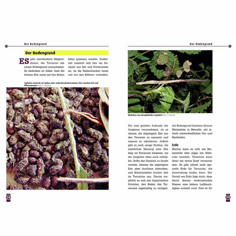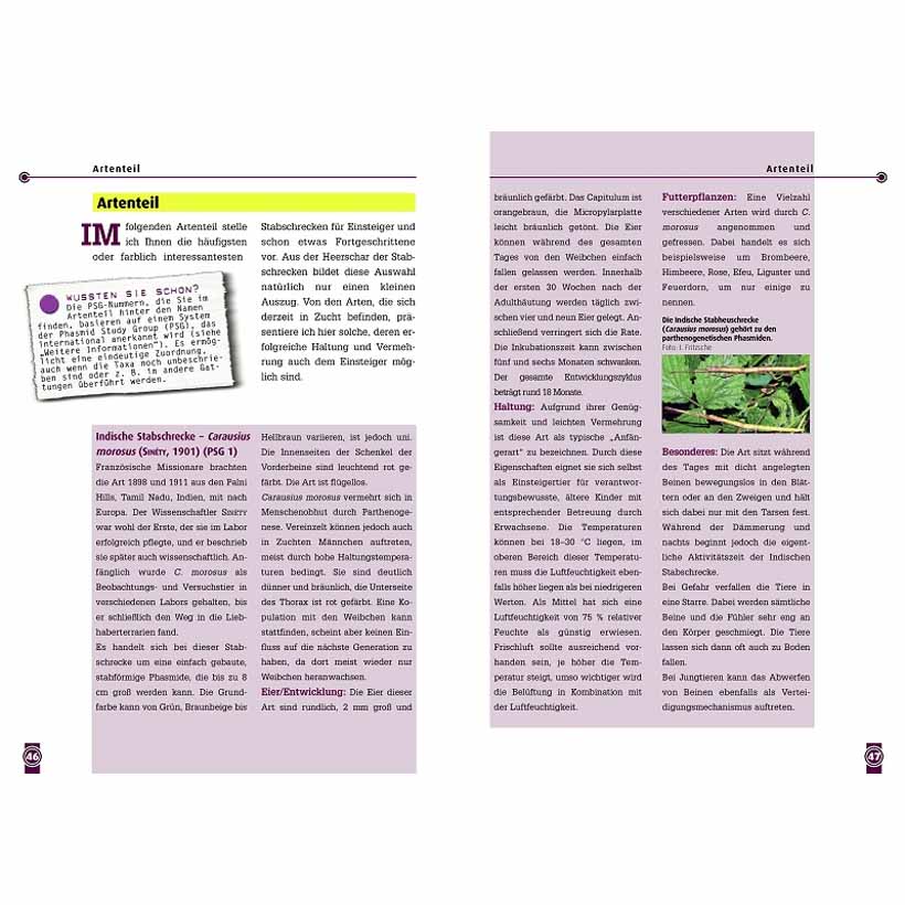 In diesem Ratgeber aus der Reihe „Art für Art“ erklärt Autor Ingo Fritzsche, was für eine artgerechte Haltung und erfolgreiche Vermehrung von Stabschrecken nötig ist. Die Stabschrecken, auch Phasmiden genannt, zählen nicht gerade zu den Favoriten unter den eigentlichen Terrarientieren, doch nimmt die Anzahl der begeisterten Halter und Züchter stetig zu. Gerade in den letzten Jahren konnte ein enormer Zuwachs bei den gepflegten Arten erzielt werden, was auf eine gute Organisation der Phasmidenzüchter zurückzuführen ist. In einigen Ländern zählen die Stabschrecken zu den beliebtesten Haustieren, so auch im Mutterland der Phasmidenhaltung, in England. Dort werden derzeit weit über 200 verschiedene Arten von Stabschrecken erfolgreich nachgezüchtet.