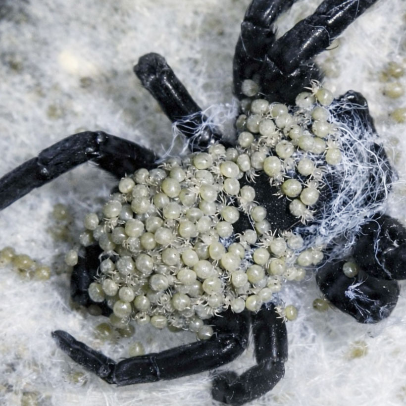 Reproductive behavior is an absolutely exceptional case in the spider world. After mating, the female does not simply remain “functional”, but invests herself completely in her offspring. The young animals hatch protected in the living tube – and then something happens that often makes even experienced terrarium keepers gulp: The mother is gradually consumed by her own offspring. Not an accident, not stressful behavior, but an evolutionarily established strategy. The mother’s body serves as the first, vital source of food. Radical? Yes. Effective? Absolutely. And biologically speaking, a fascinating example of maximum brood care.