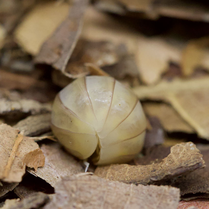 Armadillo officinalis “White Pina” is a noble, almost ivory-colored breeding form of the European woodlouse Armadillo officinalis. Their smooth, curved body shape and ability to curl up completely make them not only visually attractive, but also highly interesting biologically. Their bright, almost pearly carapace is particularly striking and clearly sets them apart from the wild-colored varieties.