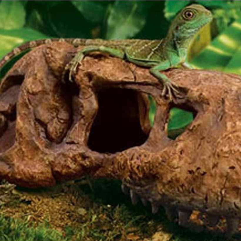 The Exo Terra T-Rex Skull also helps to create an optimal terrarium climate. A moisture-rich microclimate is created inside the skull, which is of enormous benefit to many reptiles during thermoregulation and moulting. Reptiles are extremely happy to use the Exo Terra T-Rex skull terrarium cave, which is easily accessible thanks to the generous entry openings.